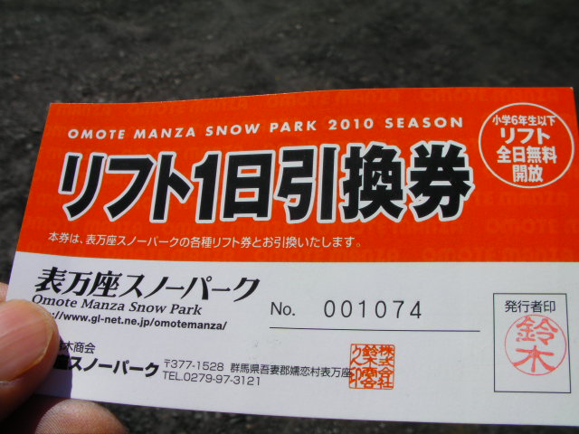 万座温泉を後に次は表万座に向かいました。こちらはSBNさんから頂いた支援券を使わせて頂きました。クチコミではいつもガラガラで空き空きという情報でしたが、当日も噂通りガラガラでした(苦笑)しかし実際に滑ってみると、コースは素晴らしいし、眺望も素晴らしいで、凡打製造機共々お気に入りゲレンデに即登録認定となりました。ちなみに他はなかさと清津だったりします。要するに空いていてロングコースならOKなのかも?(苦笑)
