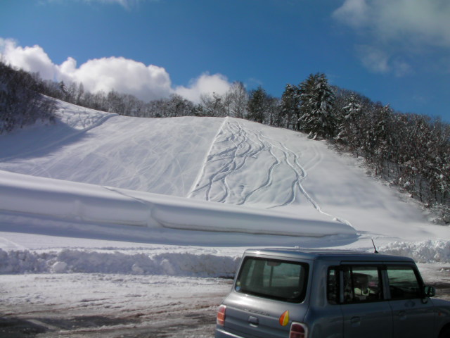 行くときは圧雪が残っていましたが、帰りには大分融雪しシャーベット~ウェット。日影には圧雪が残っていました。アクセス路は広い新しい道ができたようで快適でした。