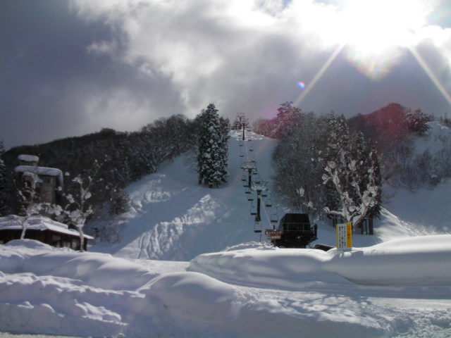 奥飛騨のロコスキー場の白木ケ峰スキー場です。シングルリフト2本のコンパクトなスキー場でしたがそれなりに楽しめました。新雪もありましたが、湿気があって潜らず、斜度がないのでターンすると止まってしまうような新雪でした。残念。山頂行きペアは積雪量が多すぎて除雪に手間取り滞在中には動きませんでしたorzここはスキー場としてよりも「飛騨まんが王国」としての方が知名度があるようです。