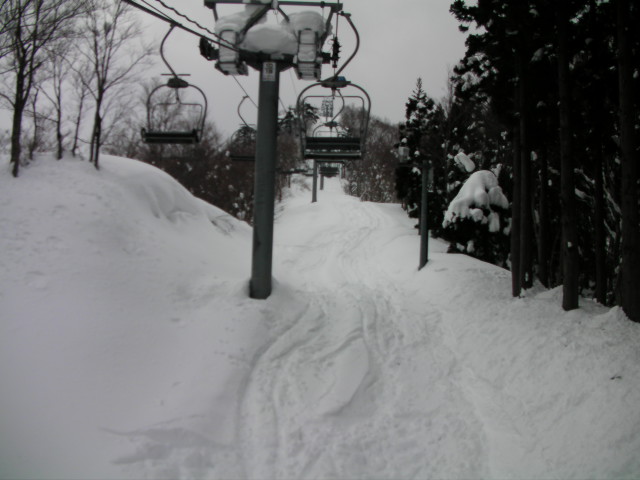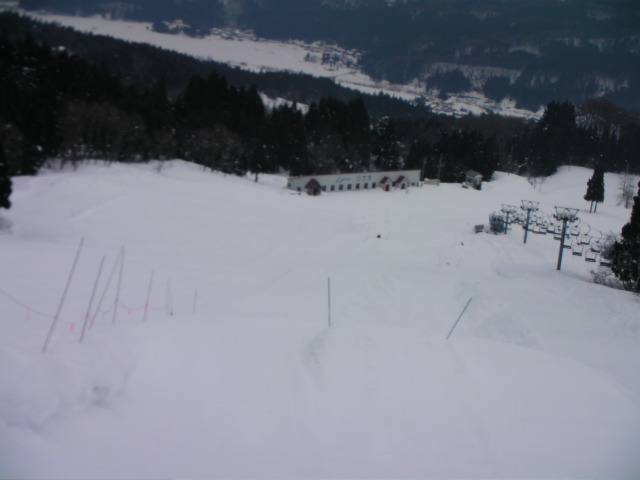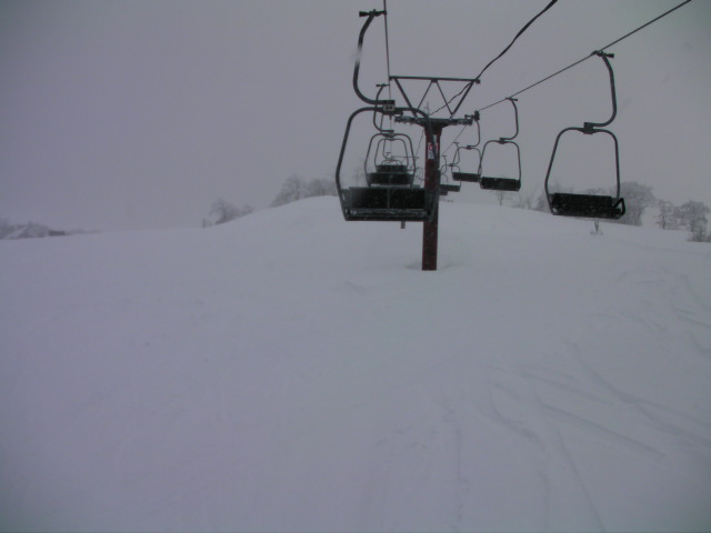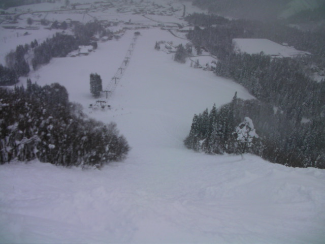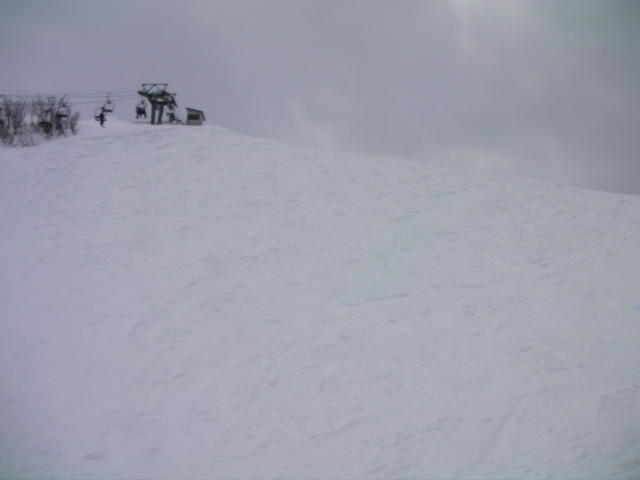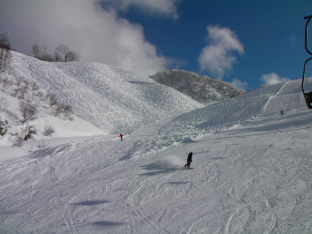 第6ゲレンデの滑走です。積雪量200cmの割には地形のうねりっぽいゲレンデが多かったのですが、ここは癖の無いフラットな一枚バーンで、カービングで気持ち良く滑れました。B級公認コースの大会バーンだそうです。