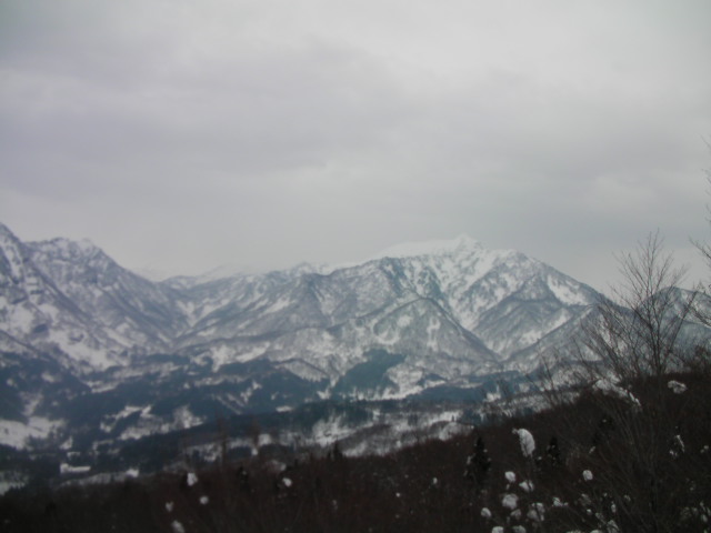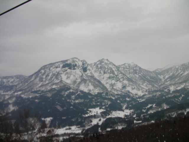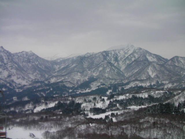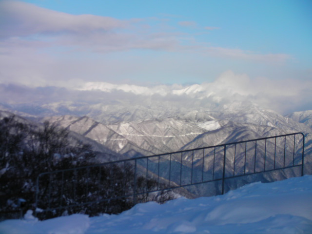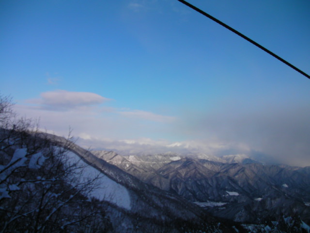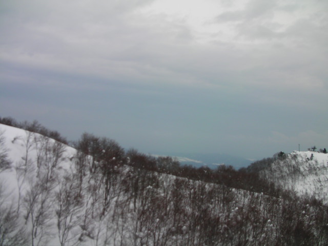 第2ロマンスリフトを降りて明星尾根コースを滑りました。冒頭の山は北アルプス(白馬乗鞍?)です。妙高らしき山もぼんやり見えていました。糸魚川の市街地と日本海もぼんやりと。幅も斜度も適度で眺望の良い素晴らしいコースでした。