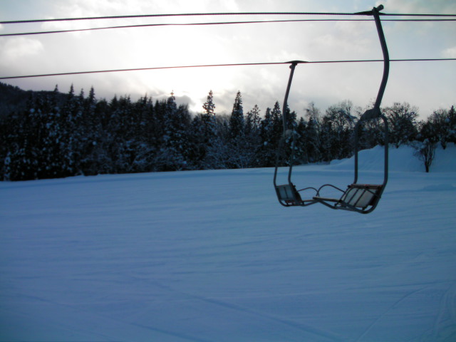 飛騨かわいスキー場の右側のリフト乗車風景と滑走です。コース幅がやや狭いものの、癖の無いフラットなバーンでカービング御用達な感じでした。欲を言えばもっと斜度があればという感じです。尚上部に通じるリフトですが現役でした。明日からの三連休は運行するようです。コースも踏んでありましたし、搬器の雪も処理してありました。この雪質なら山頂から滑ってみたい!
