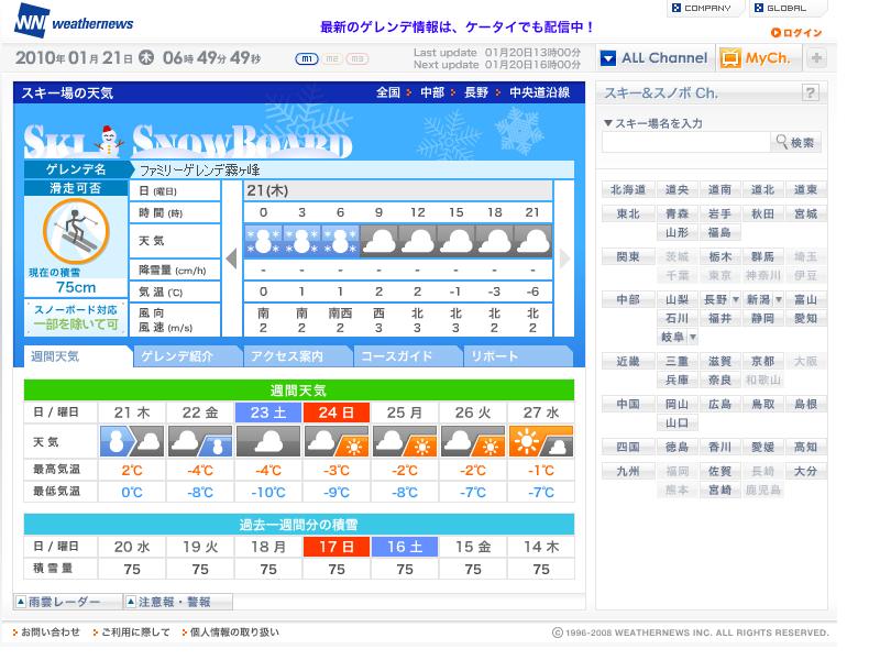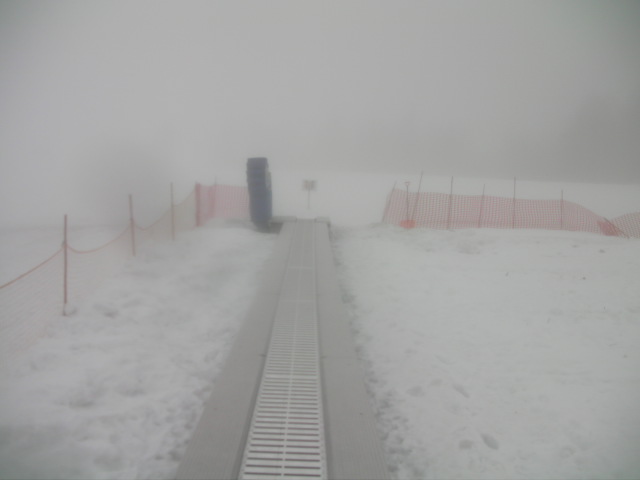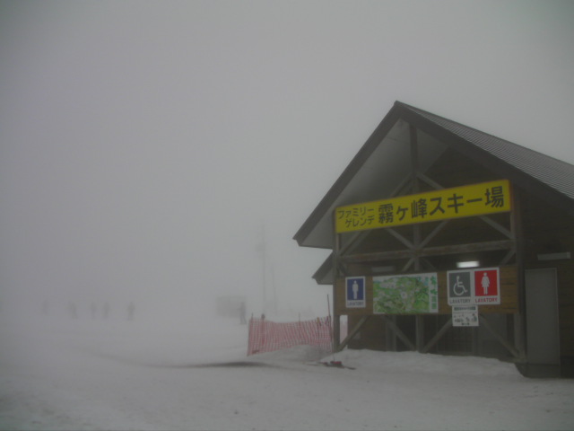 日本海から前線が南下してきて、そこへ南風が吹き込むというスキーシーズンには最悪の気圧配置。標高1600mの霧ケ峰でも前夜から雨だったようで、更に霧まで出ていて最悪のコンディション。視界は50mあったかどうか。こんな日もあるさorz