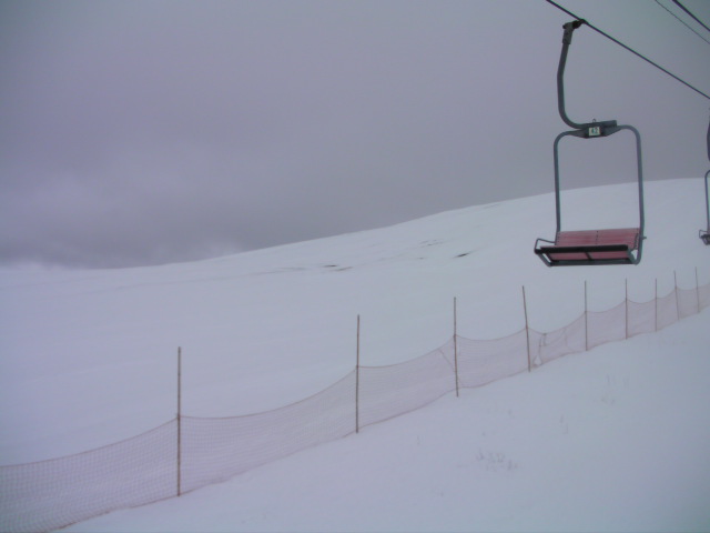 雨+霧でリフトを使っての滑走は危険だったので、らくちんくん(ベルコン)を使って短距離の反復練習しかできませんでした。それでも午後の最後にリフト1本分の長めの滑走が出来る位まで滑れるようになったので一安心。