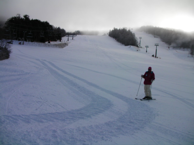 ゴンドラ運行が9時からなので足慣らしで本日から開放のラビットコースを滑ってみました。クワッドを降りて最初の所がちょっと急ですが、ぺアリフト乗り場過ぎからは緩斜面になります。メインCを少し滑ってから迂回路で入ることも出来ます。うっかりゴーグルをし忘れたので、下のほうで風圧で涙が出てきてしまい視界確保が困難になりましたorz