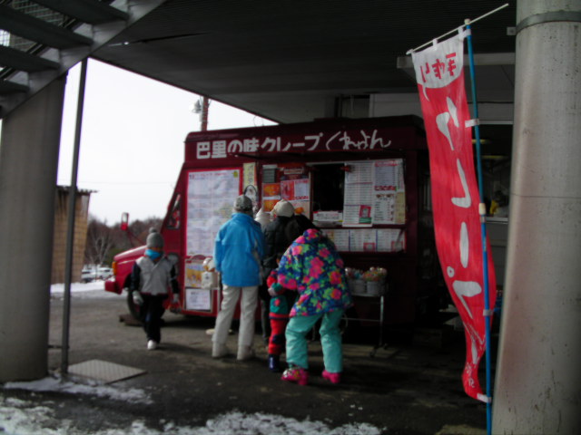 14時過ぎのゲレンデ風景です。平日午後なので当然ですがガラガラでした。建物等設備関係はそのまま使っています。レストランも通常営業していましたし、1Fの売店も営業していました。クレープ屋さんは閉まっていました。