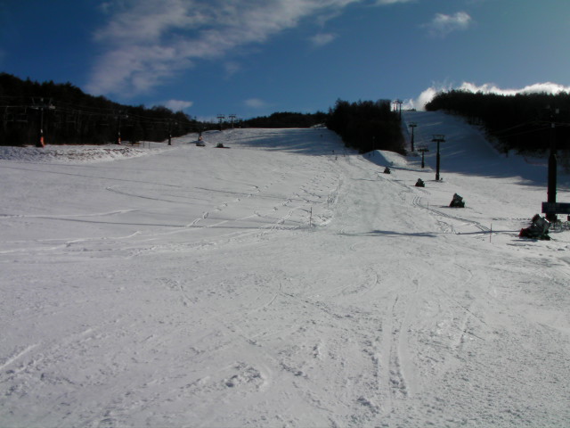 サウスコースよりは良いものの、硬めのバーンで上の方に一部アイスバーンぽい所がありました。こちらの方が斜度変化があり、距離も長く、リフトも高速クワッドなので回すには良いと思います。