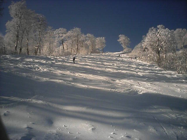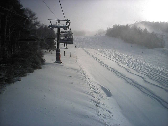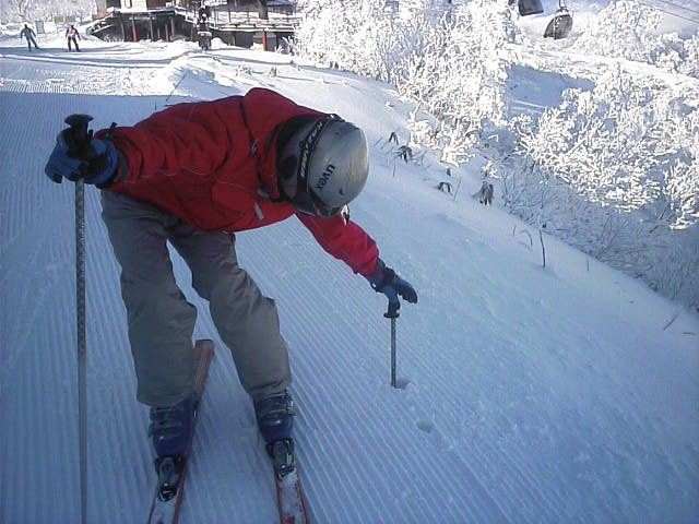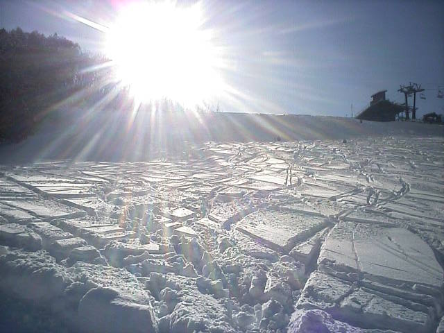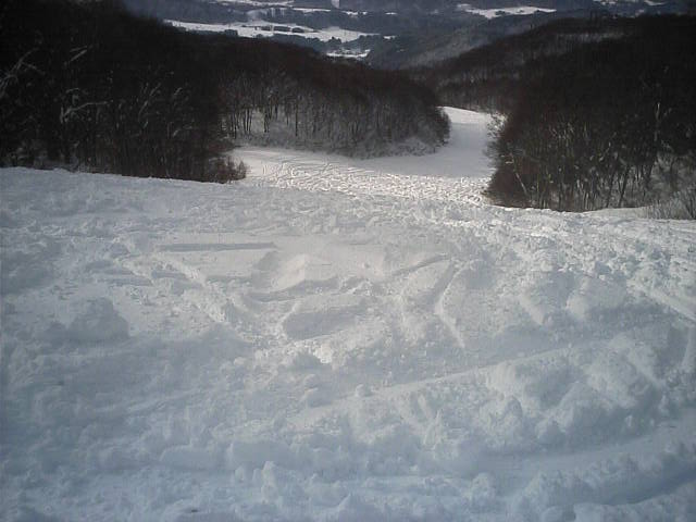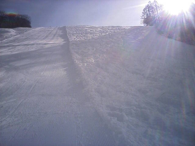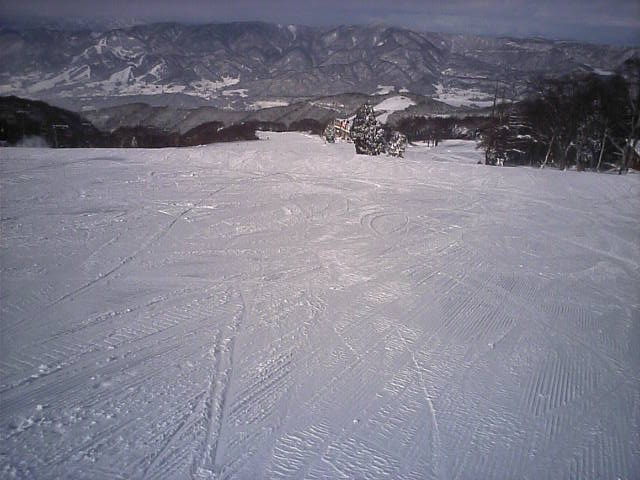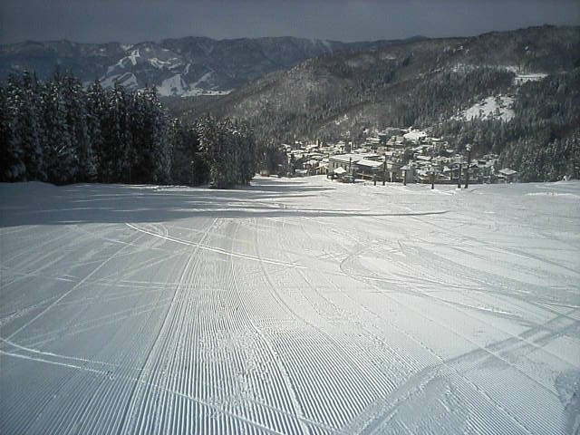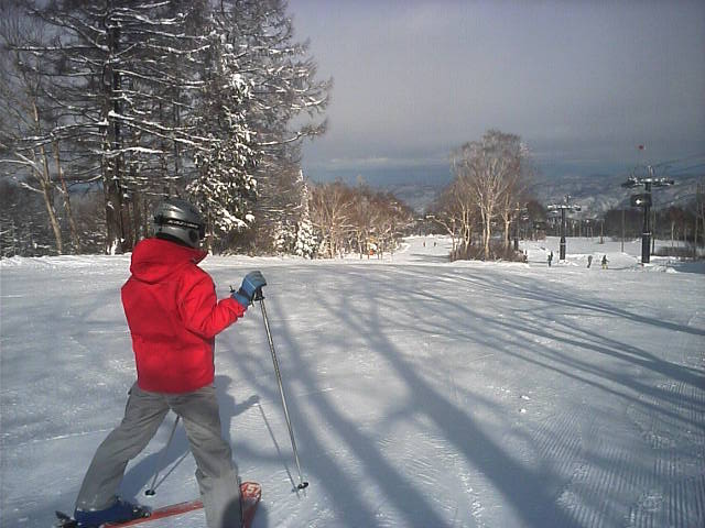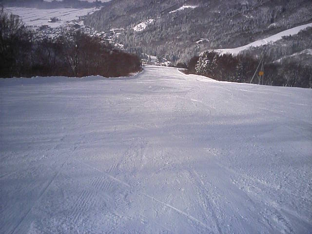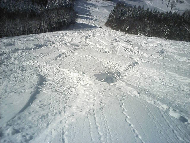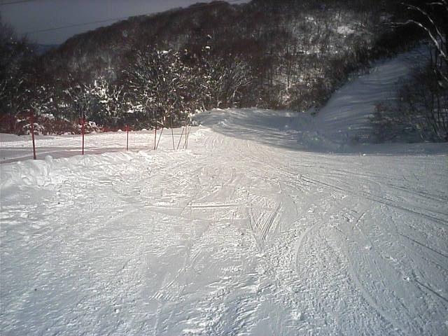 野沢温泉のやまびこAコースの朝一滑走です。ピステンの縞模様が綺麗に残っていて前半は快適でしたがフィニシュ直前の急な落ち込みの所でピステン掛けが急に雑になっていて大きくバランスを崩し危うく転倒する所でした(汗)しかし雪そのものは軽い粉雪で柔らかく非常に良い雪でした。午後2時過ぎに再度来ましたが、硬くなって若干荒れて来てはいたものの粉雪のままで品質劣化は少なかっ たです。