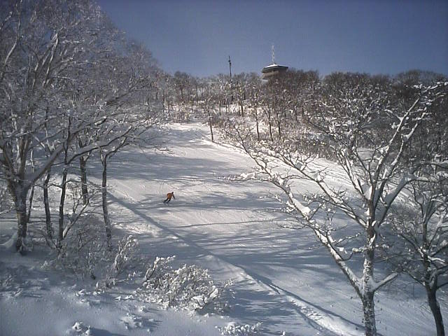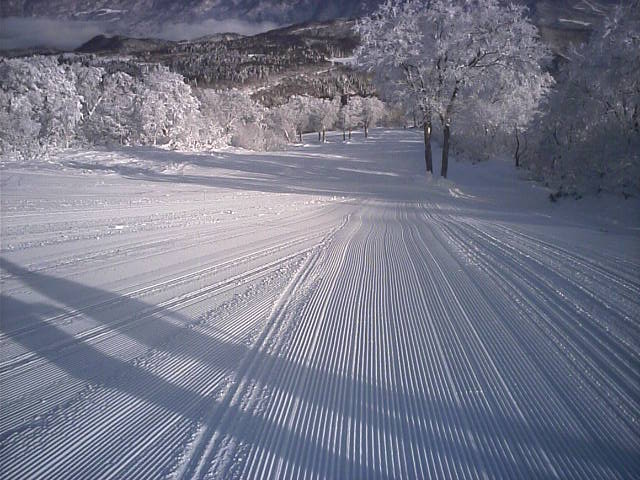 大阪の高校の修学旅行が入っていたのでゲレンデは賑やかでしたが、メインコースで滑っていたので、この時間でも第4の圧雪バーンはほぼノートラックで温存されていました。柔らかい粉雪なので滑走音がほとんどありません。