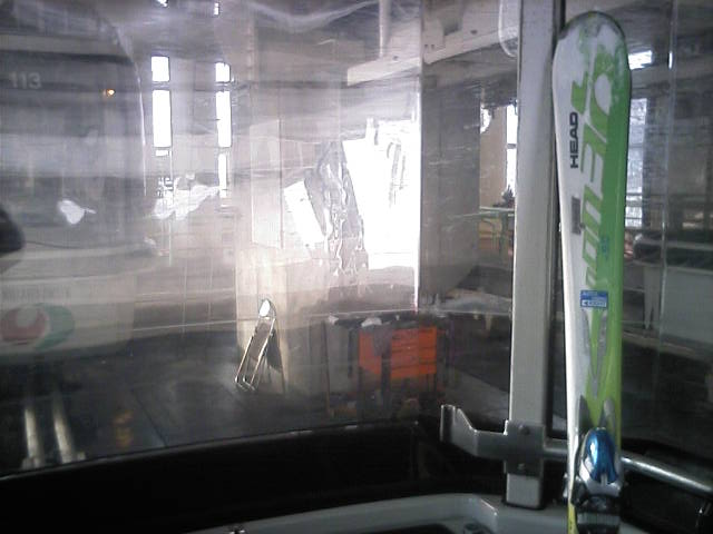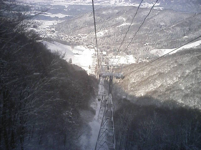 10時前にゴンドラが運行開始となりました。搬器が取り付けられたのを見てすぐに並びましたので、今シーズンの1番機がゲットできました。3本ほど滑り、これが本日の最終滑走となりました。国際らしい硬さで、粉雪圧雪高速バーンでした。今日の板は別目的の板だったのでゆっくり目の滑走です。