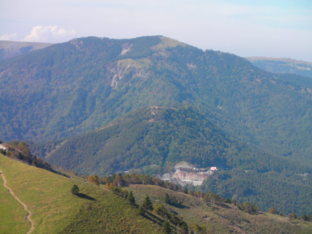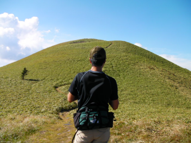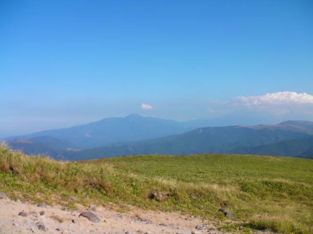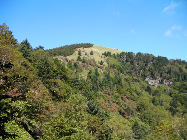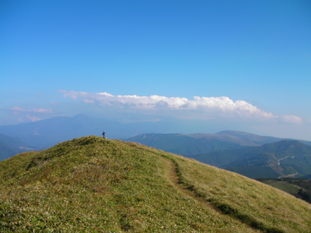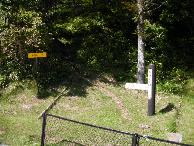 塩くれ場から王が頭への道と分岐し茶臼山(2006m)へ向かおうと思ったのですが、登山道は牧草地の中で踏み跡もあって迷うことは無かったのですが、行く手を牛に阻まれここで撤退ですorz 踏み跡は明瞭ですが気を付けないと牛糞があちこちにばら撒かれていて踏んづけそうでした(汗) 本来の目的地の茶臼山はここです。