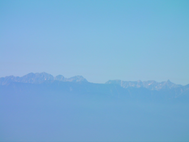 扉峠の駐車場から500mほどの九十九折れの急坂を登った稜線出合の風景です。樹林帯が無いので非常に眺めの良い場所でした。今シーズン初めてまともに穂高・槍を見られたと思います。北アルプスを見るなら山頂よりここからの稜線上の方が良く見えました。