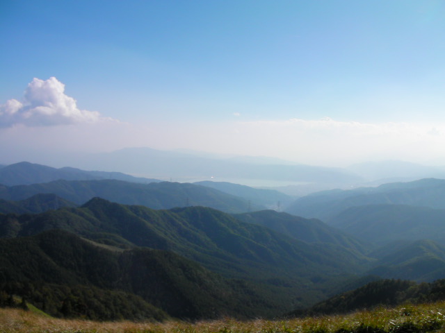 美ヶ原王が頭2034mから見える北~東~南側の風景です。出発時の麓からは雲がそれほど無いように見えていましたが、時間の経過と共に雲の量が増えてしまい見通しが悪くなってしまいました。残念。