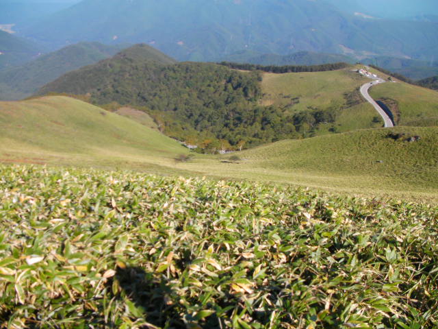 台上は車が通れないように道路を敢えて繋げていないのですが、牧場や宿泊施設の管理道路があり「指定許可車」のみ通行可能となっていて事実上台上通過ができる感じです。管理道路は登山道と兼用のため2時間ほどの滞在中に王が頭ホテルのマイクロバスと2回遭遇しましたが、宿泊者をほぼ満載で走っていました。道路工事用の重機と土砂搬入用のダンプも走っていて多少興醒めなところもありました。
