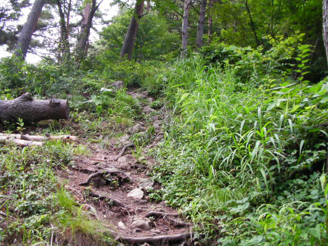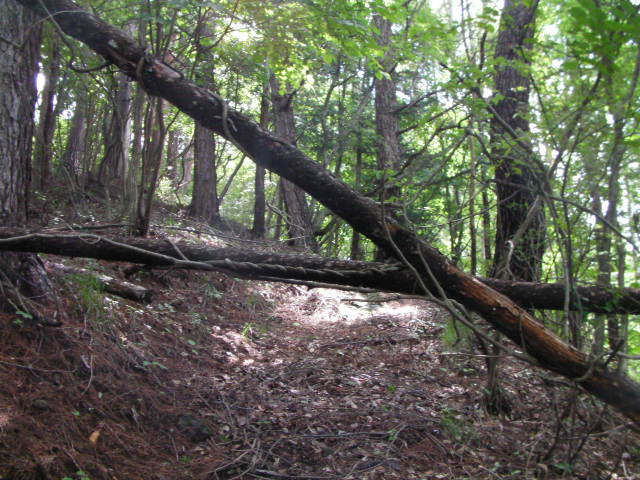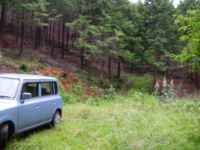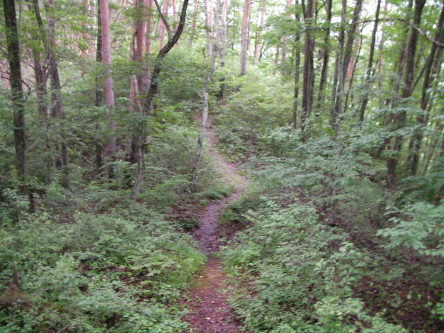 予報では午後から雨なので、桃の収穫後短時間で登れそうな朝倉山へ行ってきました。きちんとした登山道もあり30分程度の行程のようですが、今日はいつ降られるか判らないので山頂近くの林道から様子見で行きました。