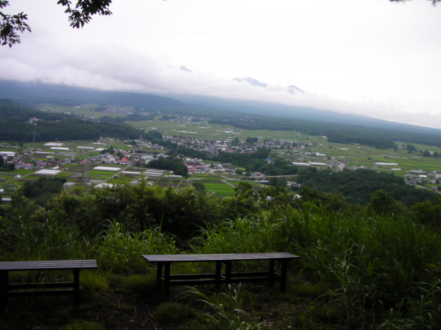 上伊那郡辰野町にある大城山山頂(1027m)の風景です。山頂部は樹木が無く南側に広がる伊那谷のパノラマが気持ち良く広がっています。パラグライダーの離陸地点でもあるようです。蛍の時期には電灯で蛍型のイルミネーション(?)もできます。山頂直下まで車でアクセスできました。