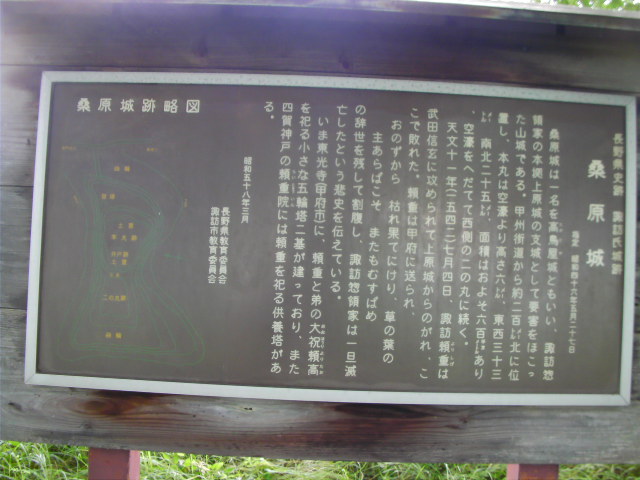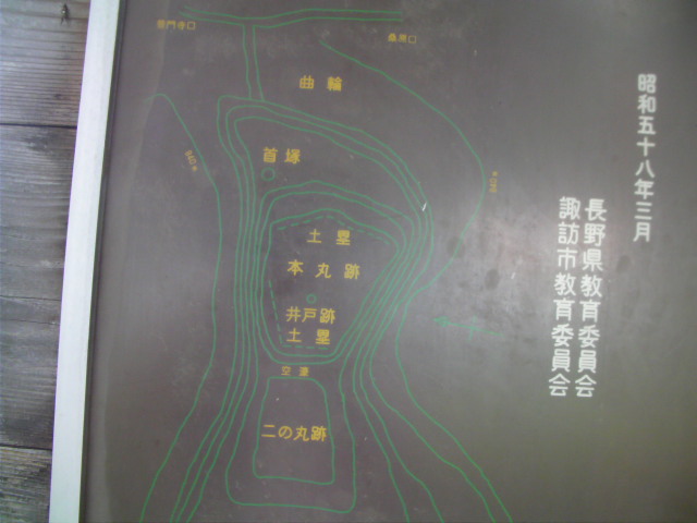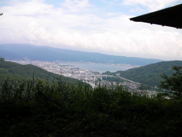 諏訪市の郊外にある桑原城址(976m)です。武田信玄の時代の城跡ですが、諏訪盆地の眺めはそこそこ良く、高島城も確認できました。正面には守屋山が良く見え、麓の諏訪大社上社本宮も確認できました。