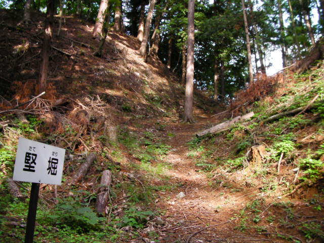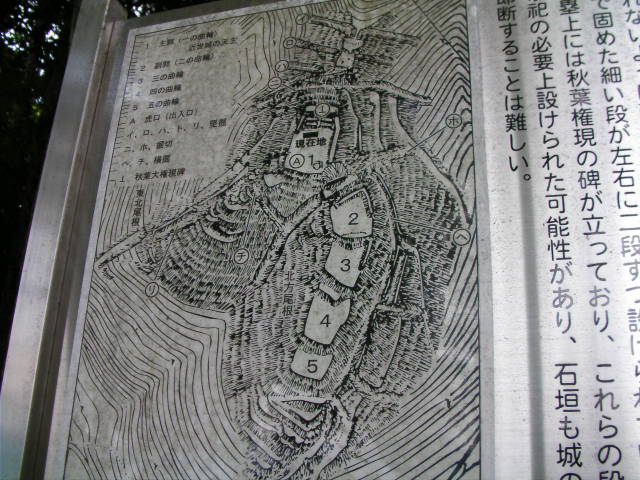 茅野市の北山にある朝倉山です。登山道もありますが山頂直下まで林道があり6~7分で山頂へ行けます。山頂の南東側に展望台状のテラスのような地形があり晴れていれば雄大な八ヶ岳が見えると思います。山頂付近には不自然な沢状のものがいくつもありましたが、空壕だったようです。