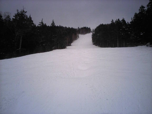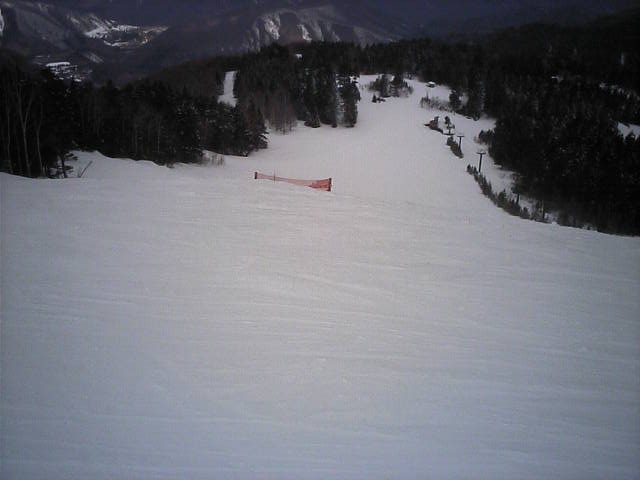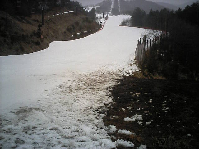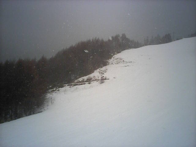 11:36~第5ペア1本で滑れるコース。上部は相当薄くなっていて、慎重な コース取りが必要だった。尚第1トリプルへの連絡通路は1箇所完 全に分断。板を脱いで渡ったorz