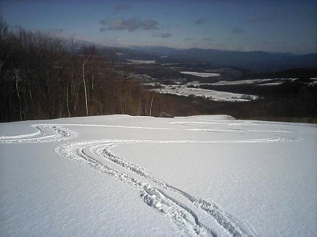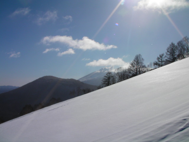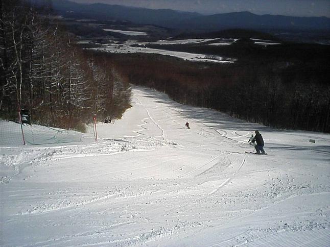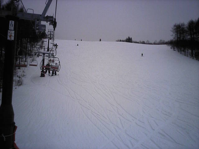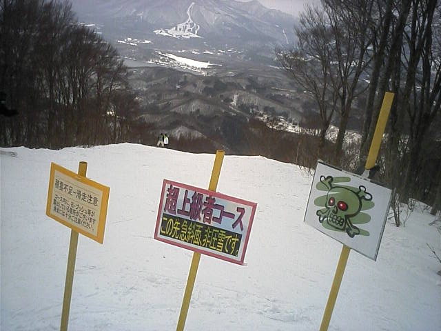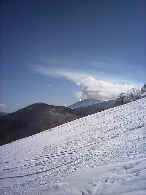 眺望は良いスキー場で、他に表万座、軽井沢SP、菅平の天狗、大松、ツバクロ、飯綱高原等のスキー場や四阿山、戸隠、北アルプス等が見えました。