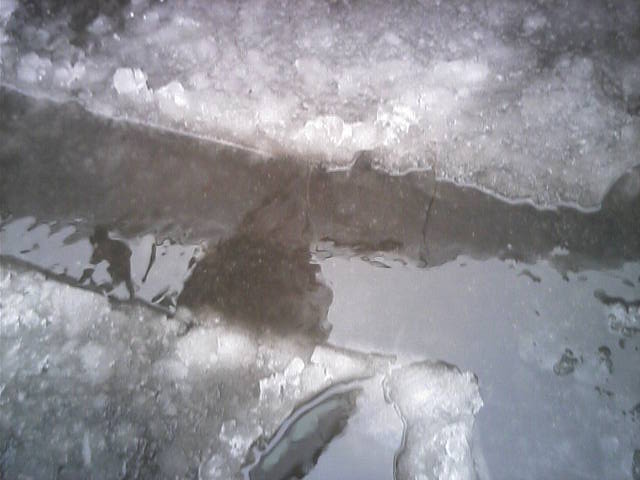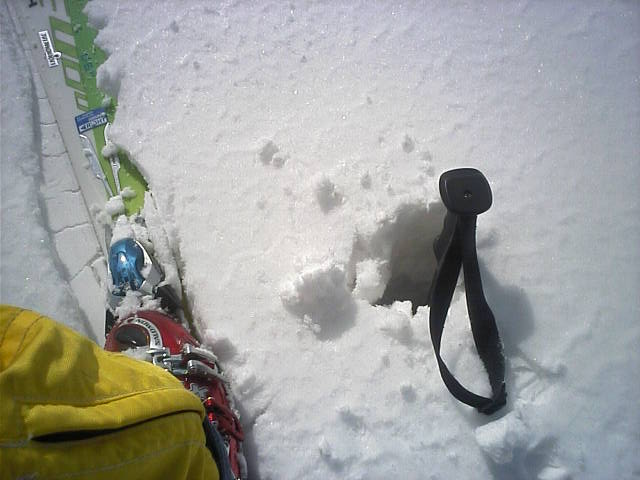 左:15:34カネナルのベース風景。 右:16:06ふと気付くと、プレート?が割れていました。不整地とかコブとか新雪とか酷使し過ぎたかなぁ…。滑走感に違和感は無かったのでまいっか(笑)