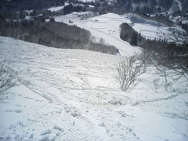 この時間はまだ馬の背コースが閉鎖中で、綺麗なバーンが見えていました。白樺Gは荒れ始めていました。