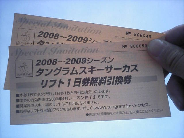メグラー支援券をいただいたタングラムスキーサーカスへ行ってきました。本日は裏山系の従兄弟と同行です。さかえ倶楽部で滑った後、R117から飯山市内を抜けて山道を登りやっと辿り着いた…という感じでした。いつもお世話になっているスキー場情報局さんのBBSの情報では今日はかなり混雑しているらしいですが、12時頃駐車場へ到着しました。