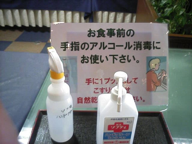 左:カフェテリアタイプのレストランジグザグ 中左:ノロウィルス騒動で休業に追い込まれた後の対策でしょうか?何箇所かにおいてありました。カフェテリア内のスタッフもマスクや手袋装着で気を使っていました。 中右:ランチプレート@1300。今日は支援券なので、食事でスキー場へ貢献しました。 右:ジグザグ内部の様子。12時過ぎのピーク時間だったのですが、割とすんなり席は確保できました。