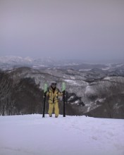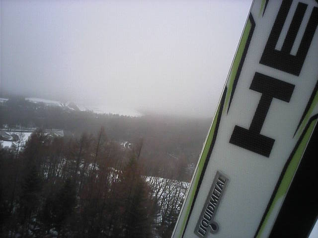 キャニオン下部は霧の中で何も見えない状況でしたが、重雪不整地は問題なく滑れました。パッション下部の斜度の無いところでEXC的に体を倒してみたら、今までに経験できなかったほど長い間ハンドスライドしていました。スゲエ!条件がよければ360行けそうな感じです。