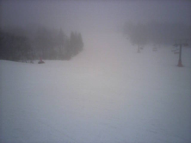 小雨は上がっていましたが、ゴンドラを使い、メイン・サラブレッドを各1本ずつ。整地はしっかりグリップして安定しています。水分をたっぷり吸い込んだ重い雪でも良く走りますね~。雪のイメージと、実際の滑走感のギャップが大きく、板が先走りし体が遅れる感じでした。視界が悪かったので高速滑走は控えました。