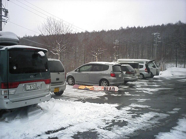 状況によっては中止とあったので、電話で確認してみるといきなり無線でパトさんと連絡取っていました。やり取りはすべて受話器から聞こえ(笑)どうもまだ張ってないようです。また後で確認の電話入れてくださいとの事でしたので、裏山系オールラウンドスキーヤーの従兄弟Tetsu65さんにベースワックスを頼んだあったRossの板を取りに行ったりして時間を潰し、帰宅組みが帰りだす時間帯を狙って出掛けました。