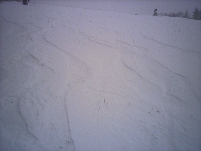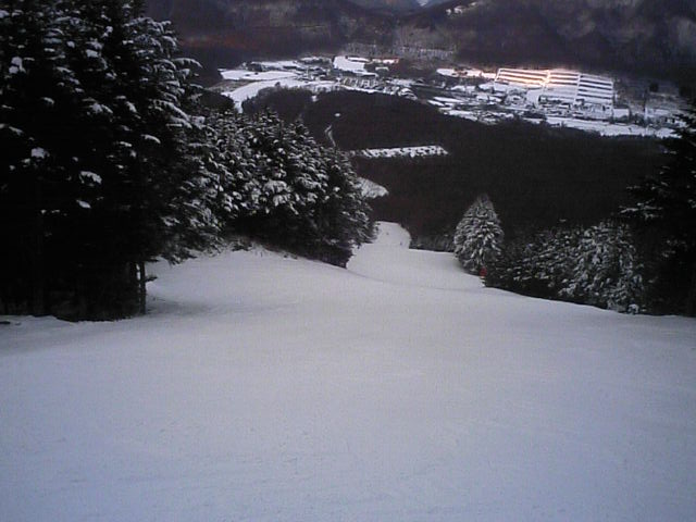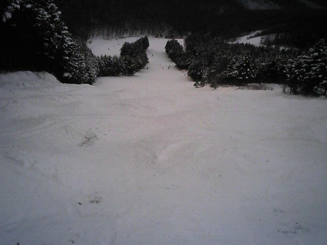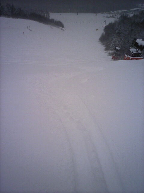 自然降雪で20~30はあったようですが、ピステンで踏んだら3~5になっちゃった…的な薄さです。雪の上といより小石の上を滑る感じでしたorz
