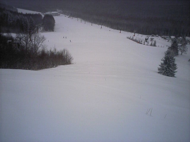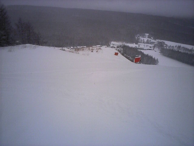 リフト線下のは弱冠の雪がありますが、見た感じ造雪機の雪が飛んできて溜まった感じで、自然降雪ではないように思えました。