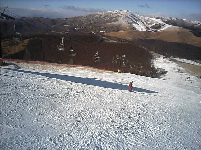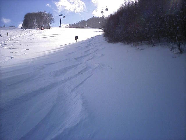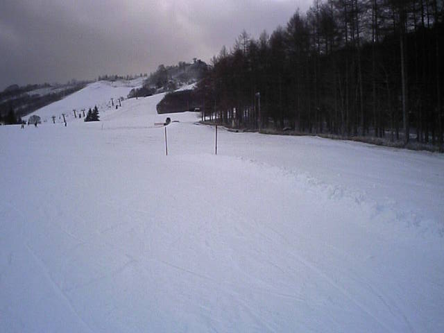 雪が薄いので若干地形が出ては居ますが、癖の無い一枚バーンです。全幅使って滑れれば、EXカービングができそうな感じでした。