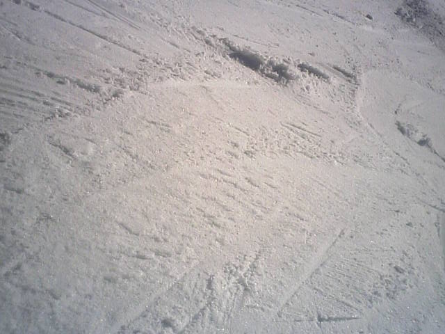 地面との境がアイスになって、その上に固めの2層目、その上に柔らかめの3層目が重なって、滑走で削っても地球が出てこないような感じでした。この時間は表面は柔らかめの粉雪が乗っていました。