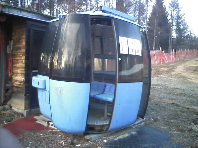 15:12 下部リフト乗り場の所にゴンドラ搬器がありました。ここにはゴンドラは無いし、パノラマの物ともタイプが違います。