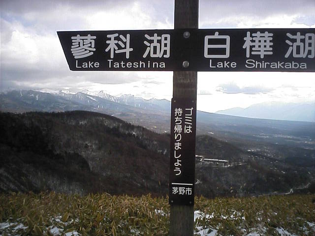 こちらの看板には「茅野市」が写っていませんが、しらかば2in1は立科町にあります。山頂が境界線で看板は茅野市側に立っているのでしょう。
