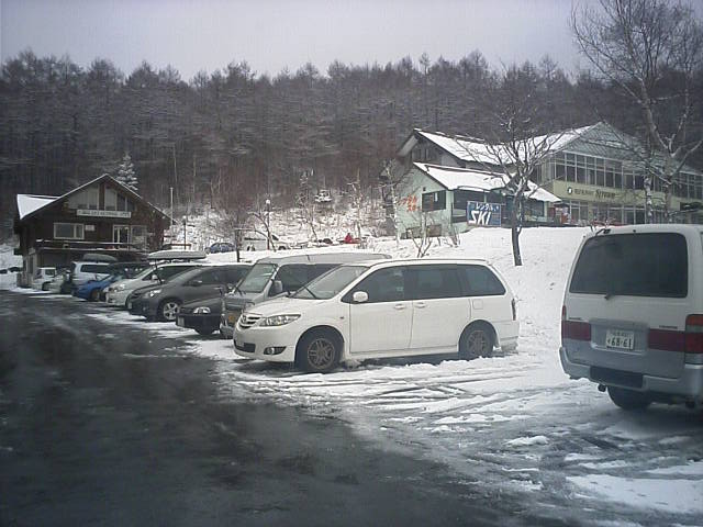 13:21 ゲレンデ直下の駐車場へ入れました。午前で帰った方が居たようでタイヤ跡の残った空きスペースがいくつかありました。