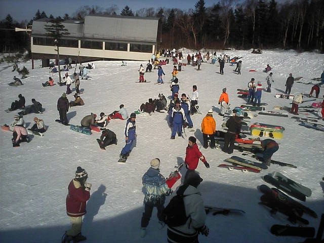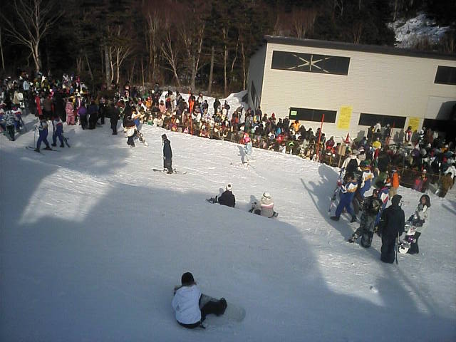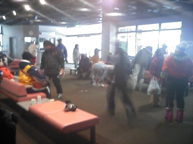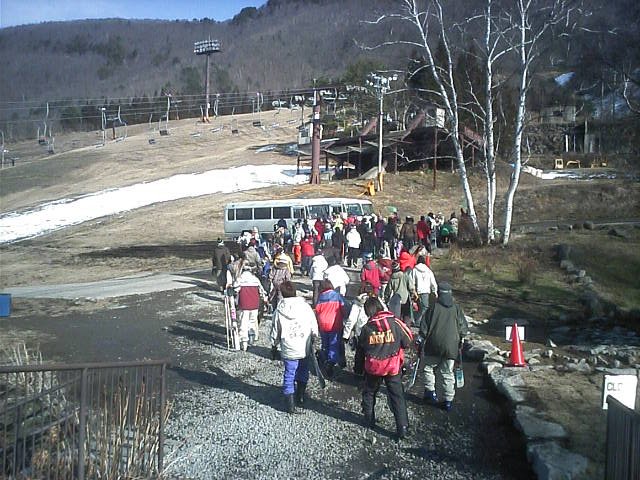 それでもこのバスも満車となり、ロープウェー山麓駅に向かいます。ゲレンデの中を登っていくと……ゲレンデ内に乱立するホテルからワラワラと人が吐き出されて来ますorz物凄い人数をパック旅行で集めているようです。