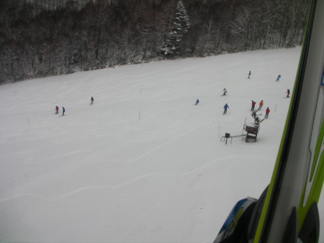 若い頃2シーズン連続宿泊込みで行ったことはありましたが、その時ロープウェーが無かったような記憶です。166人乗りは世界最大の乗車人員のようです。従ってスカイランドエリアと呼ばれるゲレンデも滑った記憶もありませんでした。北信地区が軒並み小雪でオープン延期をしているので、ある程度の混雑は覚悟の上だったのですが、結果的には覚悟は甘かったようです(苦笑)