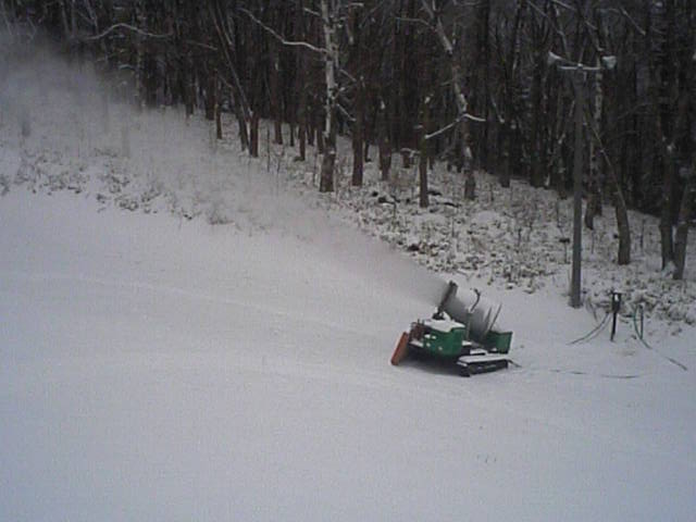 14:54 スノーマシンの稼働が始まりました。昼間動かせるのですから気温が下がっている証拠ですね。