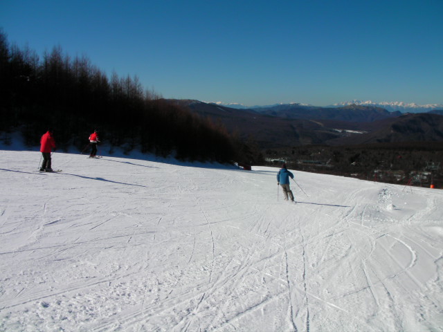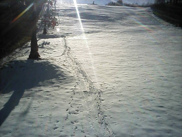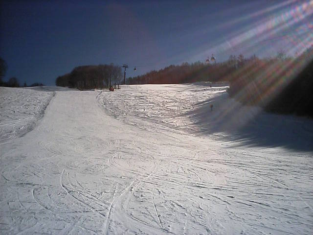 ゴンドラに同乗したとても素晴らしいシリアルNoの王国券をお持ちのIさんに午前中は新雪が15cm程あったと伺いました。この時間で5~10cmに圧縮されていましたが、ここは元々牧場なので地雷は無いだろうと入って見ました。快感でした!