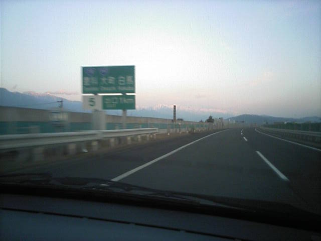 この時間ならここら辺はかなりの通行量があるはずですが空いていました。小雪情報で、今季は出足が悪いかも知れませんね…。北アルプスの山並みが朝焼けに染まり綺麗でしたが、あっという間にTN区間へ(笑)