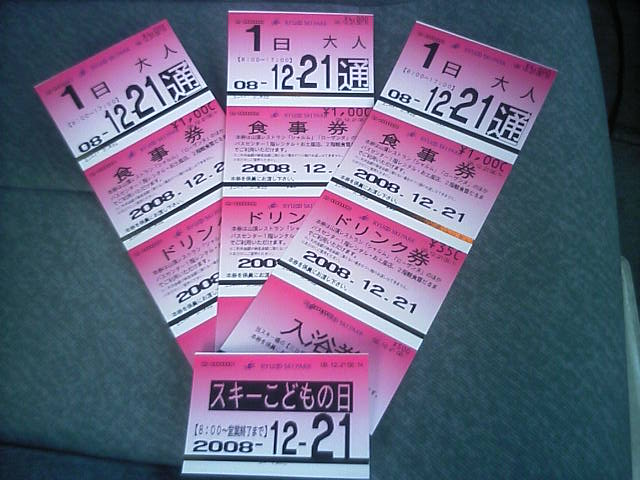 1日券は@3000の割引になっていますが、今季新設の4時間券は定価の@2500でした。(午前&午後券は廃止。但しチケセンの看板の表記はそのまま)シリアルNoの下1桁が捨て番号だとすれば16番目のチケ発行だったのかな?団体さんが10名居たので大体その位で合ってるようだったけど。台紙は昨年までと同じだった。