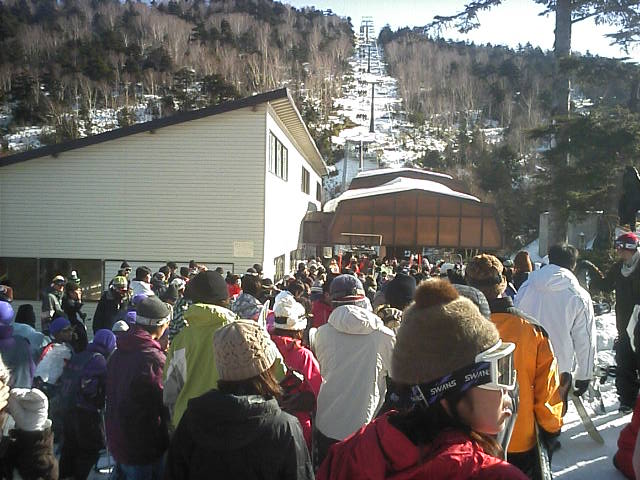 40分待ちの看板を見てどう時間を過ごすか考えましたが、スキー情報局のBBSに書き込みしたりしているうちにだいぶ進みました。