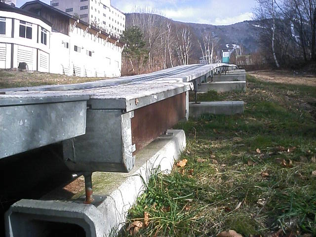 これはリフト乗り場までの連絡用ベルコンです。最近できたようですが、基礎を良く見ると如何にも仮設っぽいです(笑)