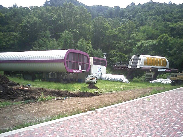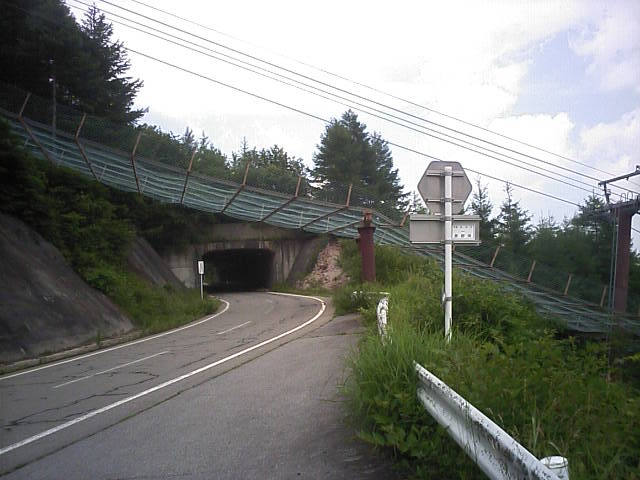 上部では車道の上をリフト(金網の上)とコース(トンネルの上)が通っています。