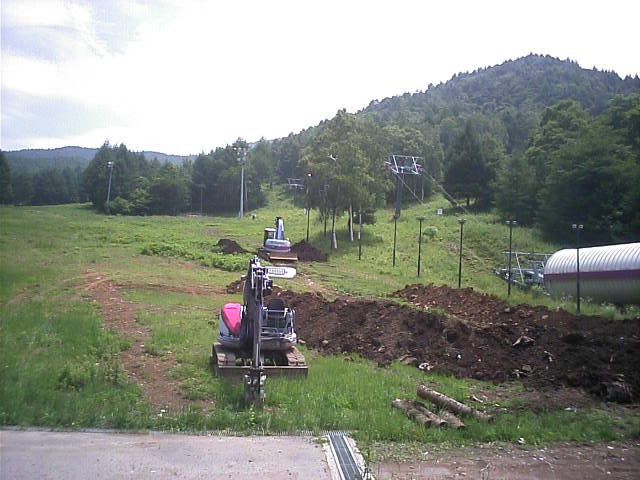 スノーマシン用の水のラインの埋設?修繕?のようでした。