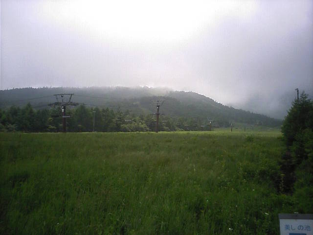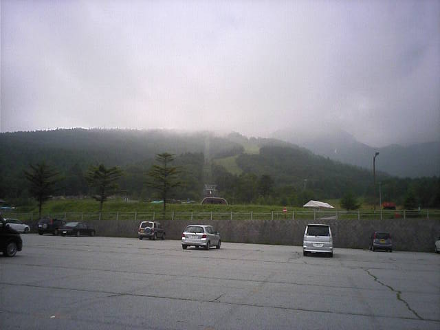 メインゲレンデ方向。晴れていれば八ヶ岳の主峰赤岳が望めるはず。山梨県側は阿弥陀岳が邪魔せず綺麗に見える(はず)