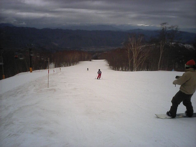 個々には一緒に滑った事のあるテレマーカーSK氏とコブラーSK氏があるミッションで栂池に行くと言う情報を得たので、同行させてもらいました(笑)そのミッションとはテレマーカー氏がコブラー氏をスキーで接待するというものですw経緯は色々あるようなので割愛しますww 今冬一番の寒気が抜けて高気圧に覆われて安定した晴天になるでしょう、という天気予報通りの申し分ないピ-カン。むしろ日差しが強すぎて昼頃からはかなり緩んだ感じにはなりましたが、栂池としては硬めの極上バーンでした。